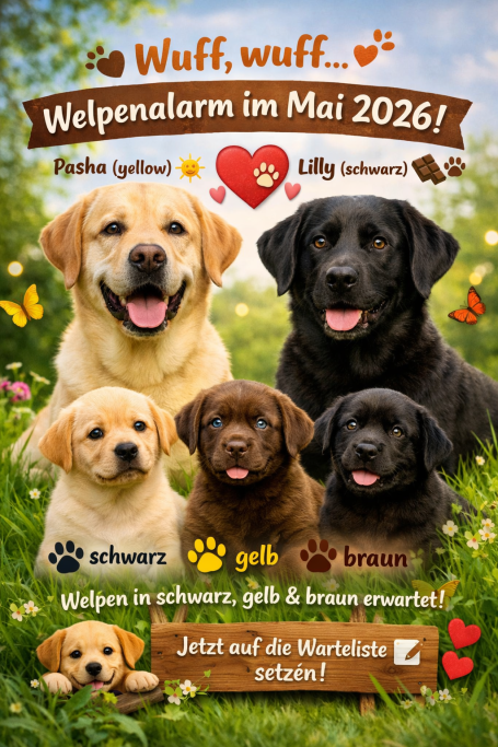 Für Mai 2026 planen wir einen neuen, flauschigen Labrador-Wurf 🐾✨